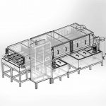 A tisztítandó munkadarabokat a mosókosárra tesszük, ami a berendezés mosó, igény esetén az öblítő és szárító fázisán végigmegy, állítható sebességű hajtóművel történik a kosármozgatás. A mosó terekben a fűtött emulzió, speciálisan kialakított szivattyú egységek segítségével magas nyomáson kerül felszórásra. A szóró-karok térben tökéletesen körbe veszik a mosókosarat.